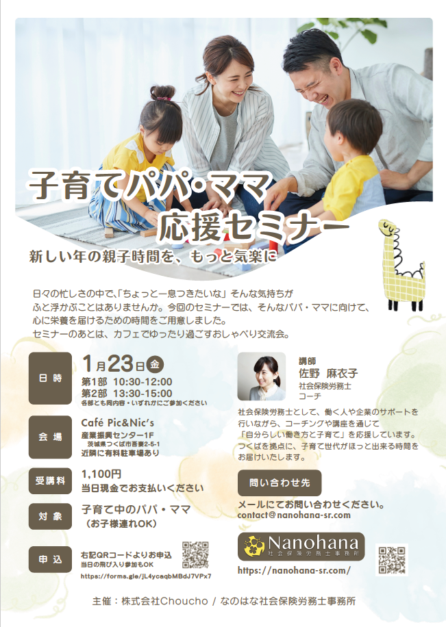 2026年もつくばスタートアップパーク内のカフェで、子育て中のパパさん&ママさん向けのセミナーを開催します。